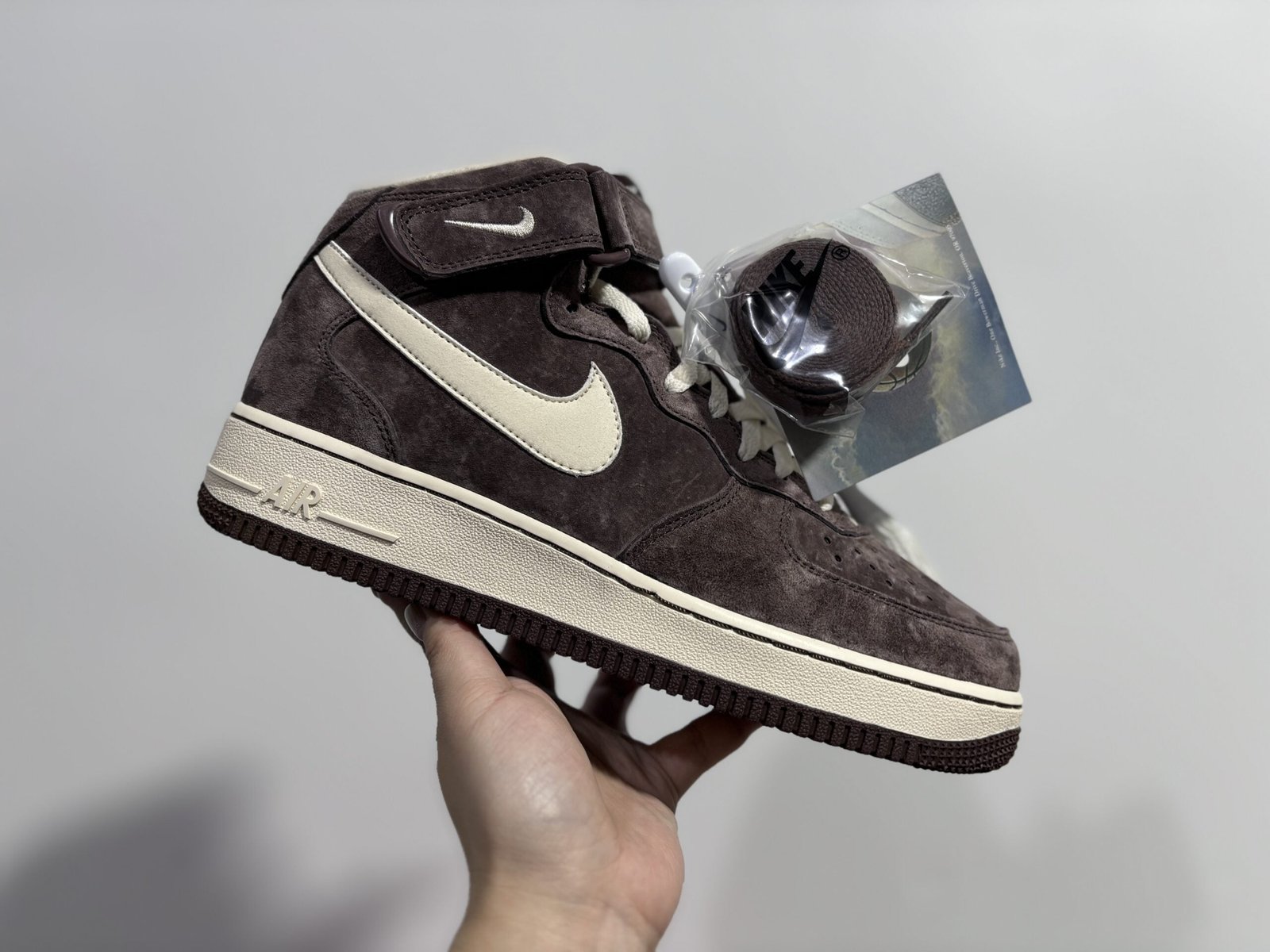 De bruine Air Force Mid zijn een onderscheidende versie van de klassieke Air Force 1, met een mid-top silhouet dat extra steun rond de enkel biedt. Het bovenwerk is gemaakt van premium bruin leer, wat een vleugje elegantie en stevigheid toevoegt aan het totale ontwerp. De gevoerde tong en de enkelkraag zorgen voor comfort en stabiliteit. De witte tussenzool en bruine rubberen zool creëren een aantrekkelijk visueel contrast. Deze sneakers belichamen de tijdloze stijl van de Air Force 1 en passen perfect bij elke gelegenheid, van casual outfits tot meer formele looks. Als een van Nike’s meest geliefde silhouetten zijn de Air Force 1 uitgegroeid tot een cultureel icoon, symbool van stijl en authenticiteit. De Mid-versie biedt een ideale balans tussen functionaliteit en mode en behoudt het klassieke erfgoed van de Air Force 1 met een moderne touch. Deze sneakers zijn waarschijnlijk in verschillende collecties door de jaren heen uitgebracht en blijven geliefd en gedragen door sneakerliefhebbers over de hele wereld.