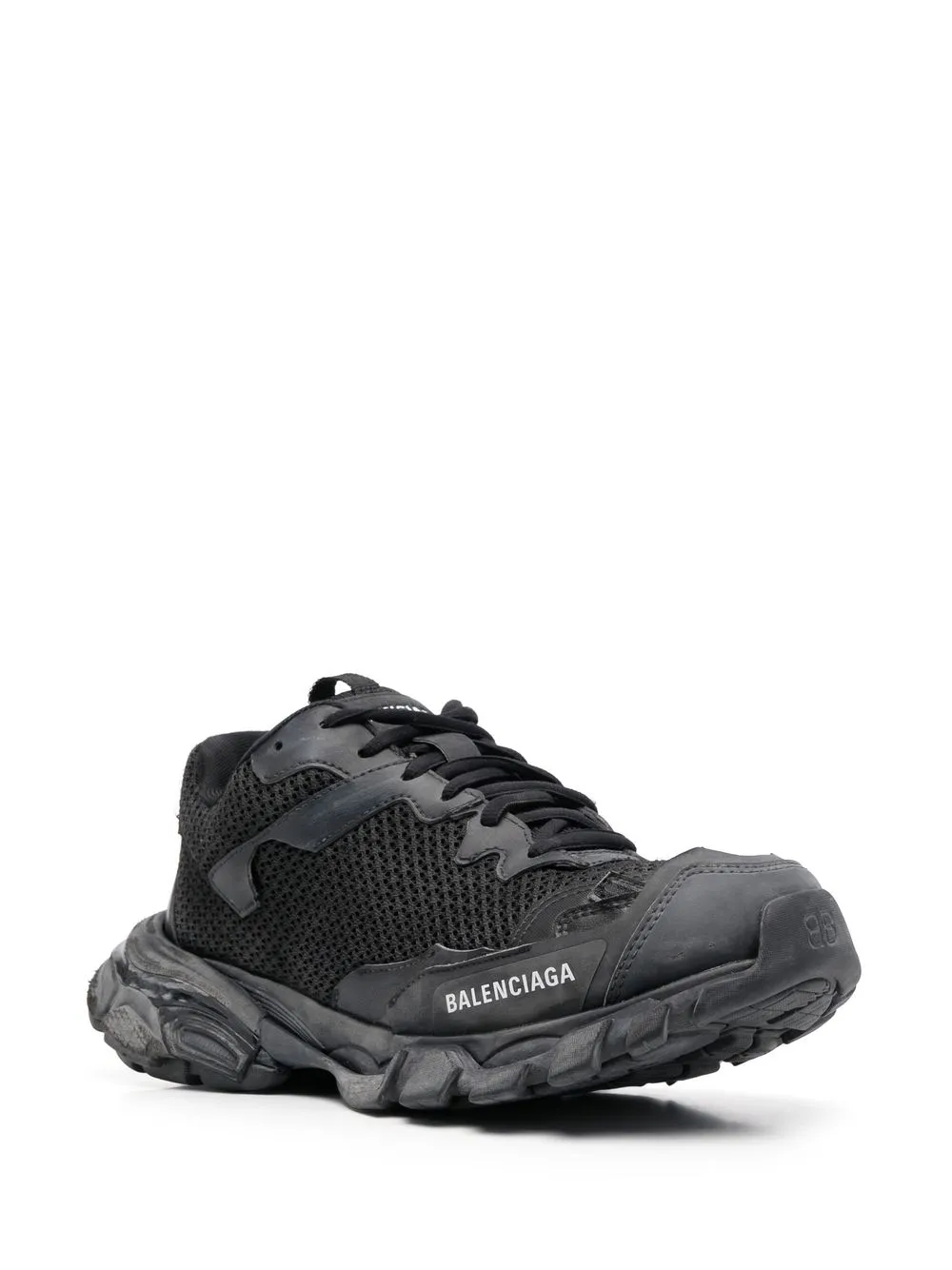 De Destroyed Track sneakers van Balenciaga zijn een gedurfde herinterpretatie van traditioneel design en combineren een avant-gardistische stijl met een bewust versleten uitstraling. Deze sneakers zijn gemaakt van een combinatie van premium materialen zoals leer, mesh en rubber, wat comfort, ademend vermogen en duurzaamheid garandeert. Hun onderscheidende design heeft gescheurde details en een distressed afwerking, wat zorgt voor een stoere en rebelse look. De dikke, sculpturale zool biedt uitstekende demping en optimale tractie, waardoor ze ideaal zijn voor dagelijks gebruik. De prominente Balenciaga-branding en aandacht voor detail maken deze unieke sneakers compleet, perfect voor wie op zoek is naar een onconventionele en eigentijdse stijluiting.