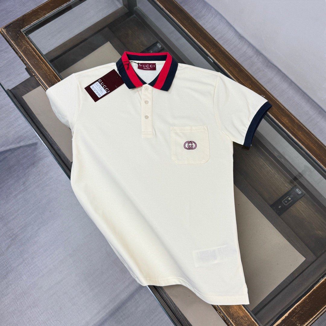 Gucci Polo Shirt Cotton Piqué Interlocking GG Embroidery Web Collar & Cuffs Chest Pocket