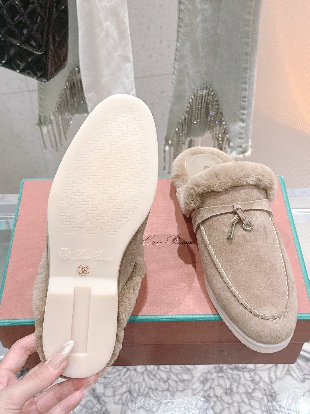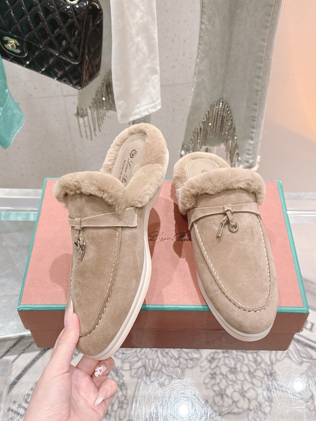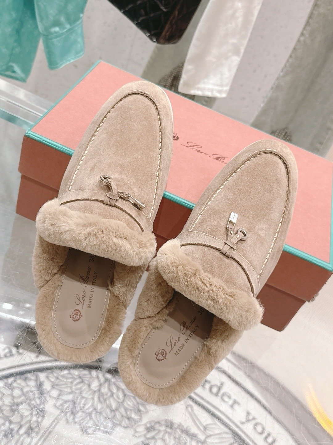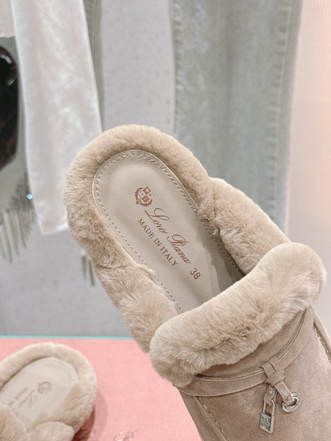 Loro Piana Open Walk Fur-Lined Mule Wit Beige
