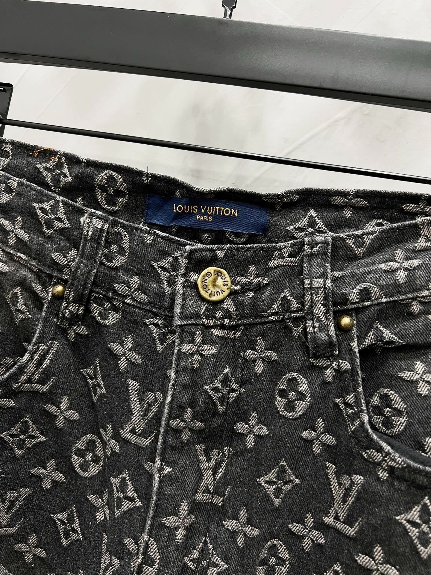 Louis Vuitton Jeans Monogram Distressed Dark Grey