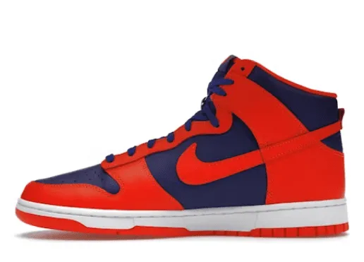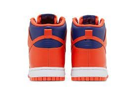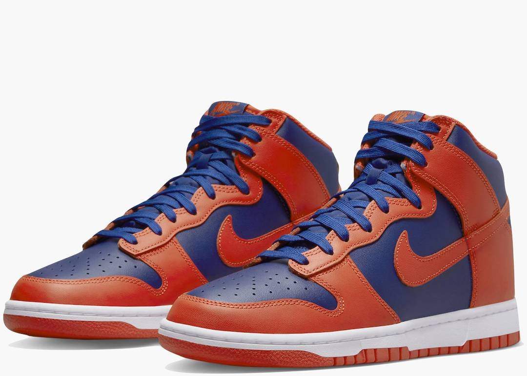 De Nike Dunk High “Knicks” is geïnspireerd op de iconische kleuren van het basketbalteam New York Knicks. Deze sneakers hebben een combinatie van feloranje en diepblauw, met een bovenwerk van hoogwaardig leer. Het ontwerp wordt gekenmerkt door oranje details op de neus, hiel en tong, terwijl blauw de zijpanelen en het merk Nike Swoosh domineert. De witte zool en rubberen tussenzool maken de look compleet en bieden een strak en klassiek contrast. De Nike Dunk High “Knicks” wordt gewaardeerd om zowel zijn sportieve aantrekkingskracht als zijn gedurfde en stedelijke stijl.