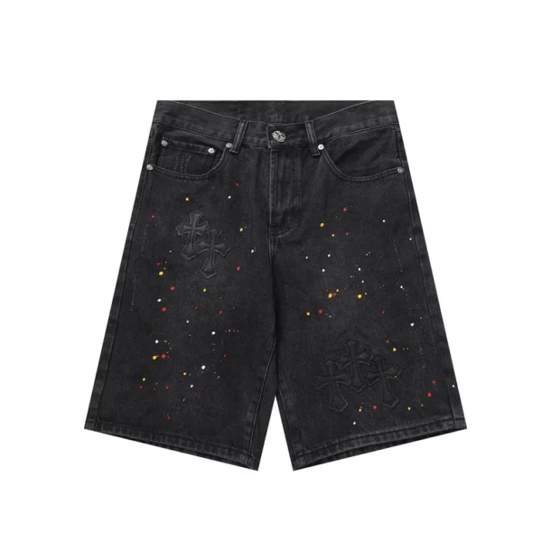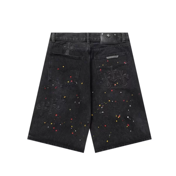 Chrome Hearts Cross Patch Paint Splatter Denim Shorts – Zwart